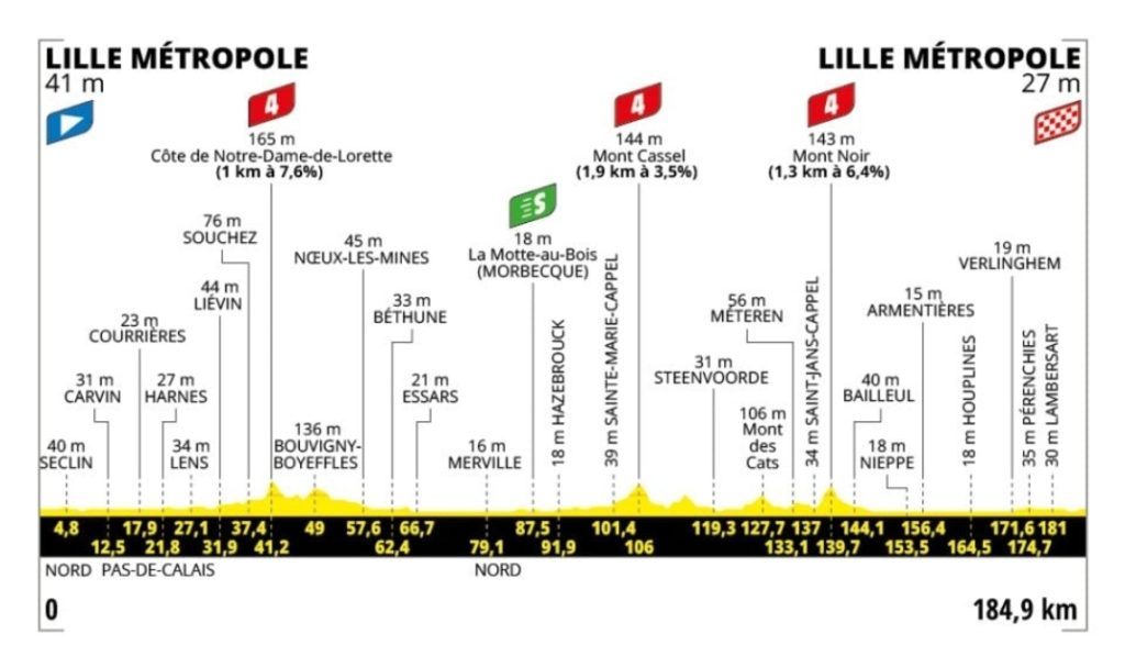 開幕ステージはほぼ平坦の184.9km、スプリンターたちによる激しい勝負が予想されています。